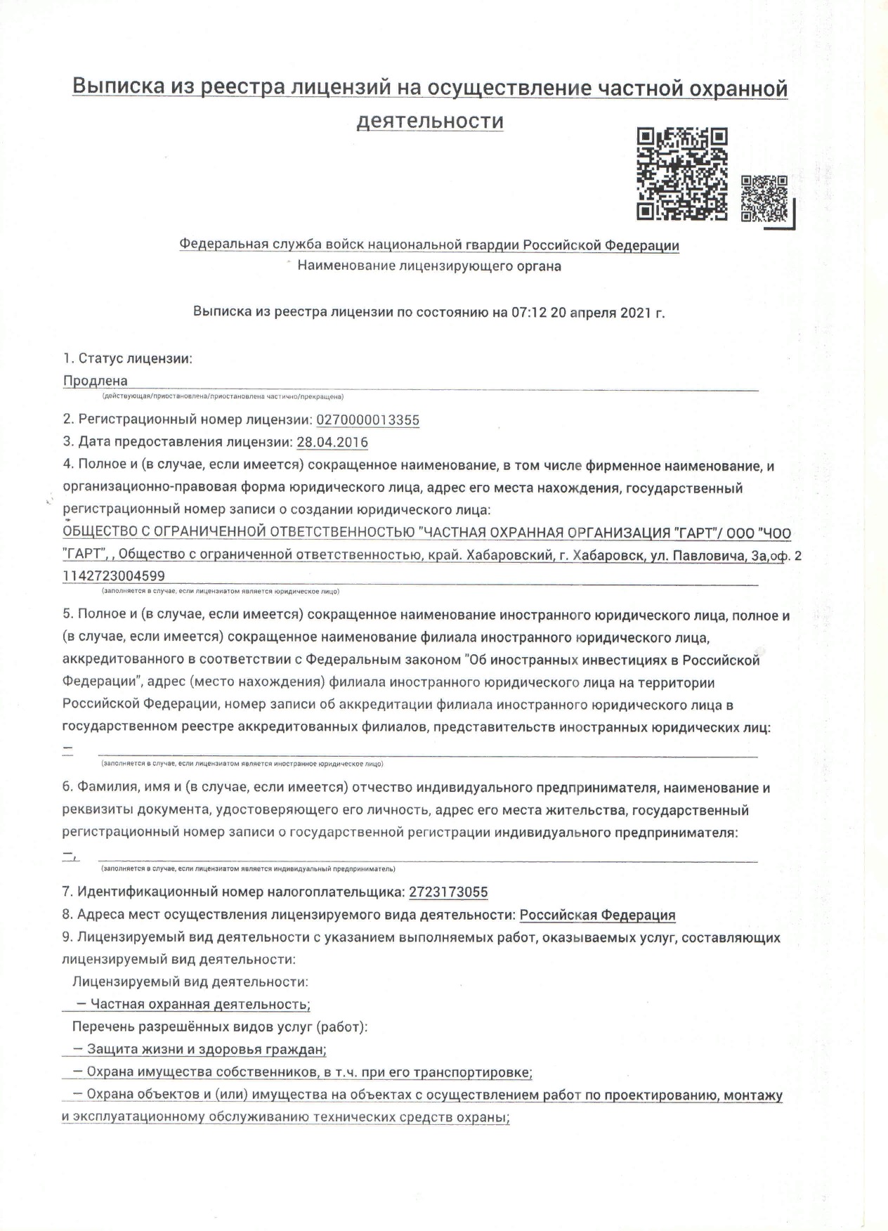 Частное Охранное предприятие «Гарт» основано в городе воинской славы Хабаровске 16 мая 2005 года.