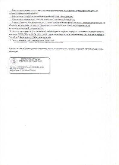 - Охрана объектов и (или) имущества, а так - же, обеспечение внутри объектового и пропускного режимов на объектах, внутри которых установлены обязательные для выполнения требования к антитеррористической защищённости объектов.